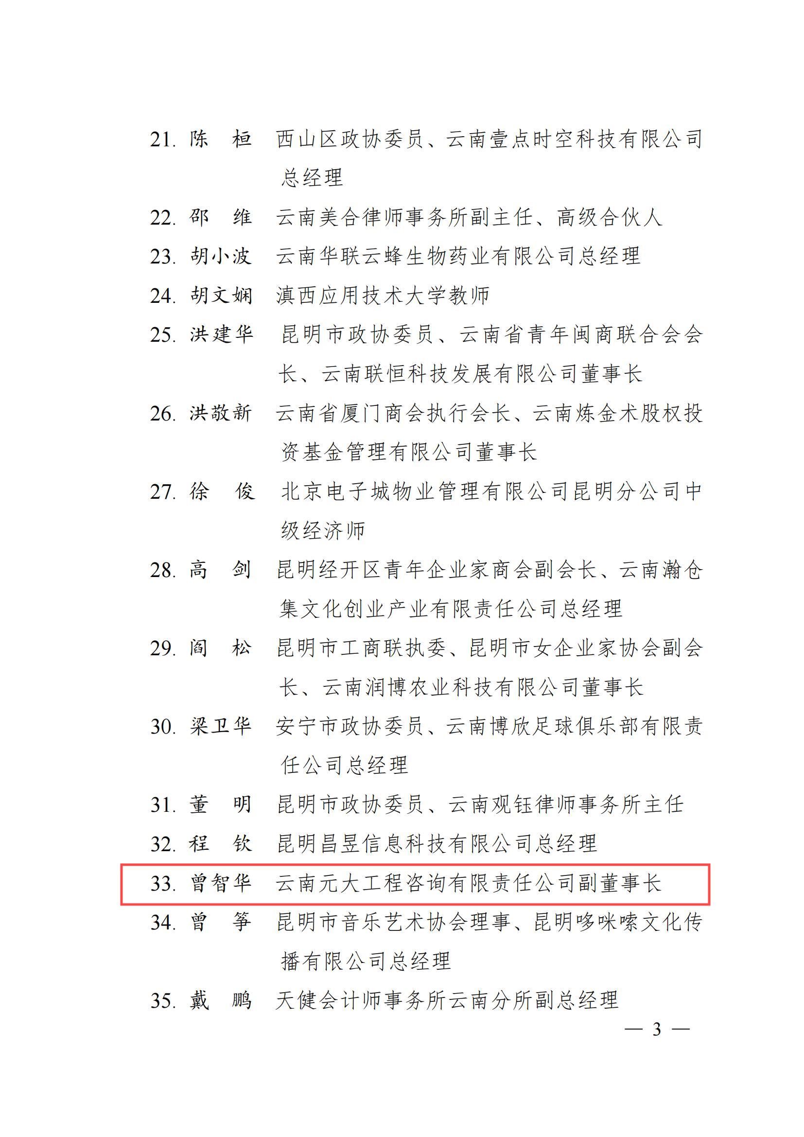 2025年4月16日,昆明市政务服务管理局正式发布《关于聘任第三期“昆明市营商环境监督员”的决定》,云南元大工程咨询有限责任公司(以下简称"云元咨询")副董事长曾智华,他凭借卓越的专业能力和社会责任感,成功入选本期营商环境监督员名单。此次聘任是对曾智华先生个人贡献的认可,也是“云元咨询”积极履行社会责任、助力地方经济发展的重要体现。